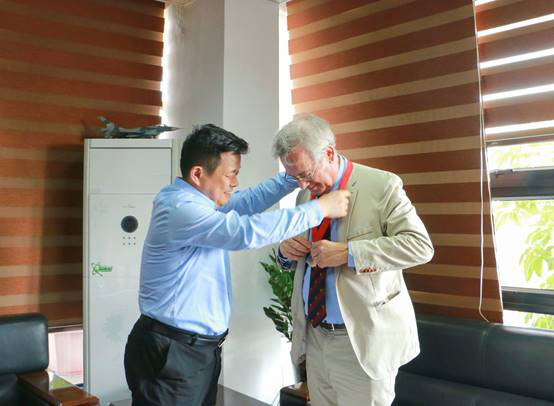 On June 18, President Chen Xin met with Academician Bernard Monet, a distinguished professor of our university and a leading talent of Guangdong Province, and personally wore medals and group photos for him.