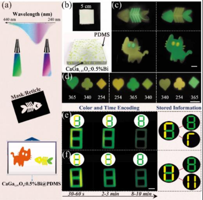 Long-persistent luminescent materials with tunable and controllable optical properties have great application value in ultraviolet light sensing, information display, and encryption. However, achieving single-component, multi-modal, and dynamically color-tunable long-persistent luminescence in chemically stable inorganic material systems faces significant challenges. The research team, based on the design concept of defect engineering, introduced cation vacancy defects through non-stoichiometric component design. This formed microenvironments in the inorganic crystal structure consisting of multiple luminescent centers and multiple trap centers, which respond to different excitation lights and store energy in localized structures. Ultimately, through thermal vibration or tunneling effects, the energy is gradually released to produce continuously tunable "orange-yellow-green" persistent luminescence. Combining experiments and theoretical analysis, the mechanism of multi-color persistent luminescence in response to excitation wavelength stimulation was elucidated. Utilizing the material's unique excitation wavelength-dependent multi-color persistent luminescence feature, dynamic optical information writing and display based on excitation method, persistent luminescence color, and time resolution were demonstrated. The developed materials and verification methods reveal their application potential in advanced anti-counterfeiting and optical information display and encryption fields.