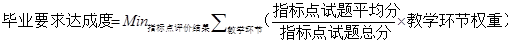 在满足条件(1)和(2)前提下,依据每届学生每门课程对应该指标点的平均成绩,参照矩阵表3.4.1计算出化学工程与工艺专业每届学生每项毕业要求指标点的达成度,毕业要求的达成度取该毕业要求对应的所有指标点达成度的最小值,具体计算公式为: