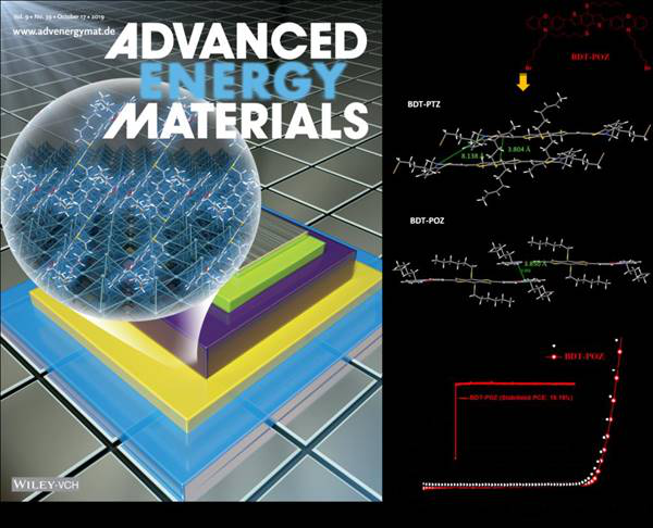 Recently, associate professor Cai Ning and Professor Huo Yanping of the organic optoelectronic materials and functional polymers team of the College of light industry and chemical engineering, together with Professor Tsang Sai wing of City University of Hong Kong, have made important progress in the research field of perovskite solar cells. The research results have been published in the international authoritative journal adv. energy in the field of energy materialsMater. (if = 24.88, top journal of the first district), and recently published as a front cover article (Yatong Chen, Xiuwen Xu, Ning Cai, * Sainan Qian, Ruixi Luo, Yanping Hu, Sai wing Tsang * adv. energy mate. 2019.9 (39), 1901268).In this work, based on the support of theoretical calculation, the d-p-d is designed and synthesized reasonablyThe highest filling factor of 81.7% and the photoelectric conversion efficiency of 19.16% were obtained when the undoped hole transport materials were applied to the trans planar perovskite solar cells. The intrinsic relationship between molecular structure / molecular aggregation structure hole mobility and device performance was revealed, which provided a new idea for the design of new hole transport materials.Our graduate students are the first author of the thesis, associate professor Cai Ning is the first corresponding author, our university is the first communication unit of the paper, and City University of Hong Kong is the second communication unit.Rational Design of Dopant-Free Coplanar D-P-D Hole-Transporting Materials for High-Performance Perovskite Solar Cells with Fill Factor exceeding 80%.