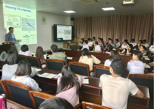 Professor Dmitri made an academic report entitled "oxygen sensor based systems for food quality and safety assessment".The report focuses on the detection and application of molecular oxygen. The principle of this detection is based on the energy transfer of phosphorescent irradiation, without any chemical reagent, it can detect the microorganism in packaged food, and develop greenlight930 product to enter the market to quickly determine food borne pathogens.Finally, Professor Dmitri summarized the importance of oxygen detection, and discussed and exchanged with the teachers and students present.Professor Dmitri's report is rich in content, humorous in speech and deeply loved by teachers and students present.