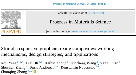近日,我校诺奖得主联合实验室在智能二维材料领域取得新进展,相关综述论文“Stimuli-responsive graphene oxide composites: working mechanisms, design strategies, and applications”正式发表于国际材料科学领域的顶级权威综述期刊《Progress in Materials Science》(影响因子44.8,中科院一区TOP)。该成果由我校张山青教授、杨蔻副教授和新加坡国立大学康斯坦丁院士合作共同完成,swag在线