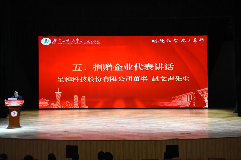 呈和科技股份有限公司董事赵文声先生代表企业进行讲话,他简要介绍了企业发展近况,并对学院在过去一年取得的丰硕成果表示祝贺,同时向全院教职工致以诚挚的新春祝福。